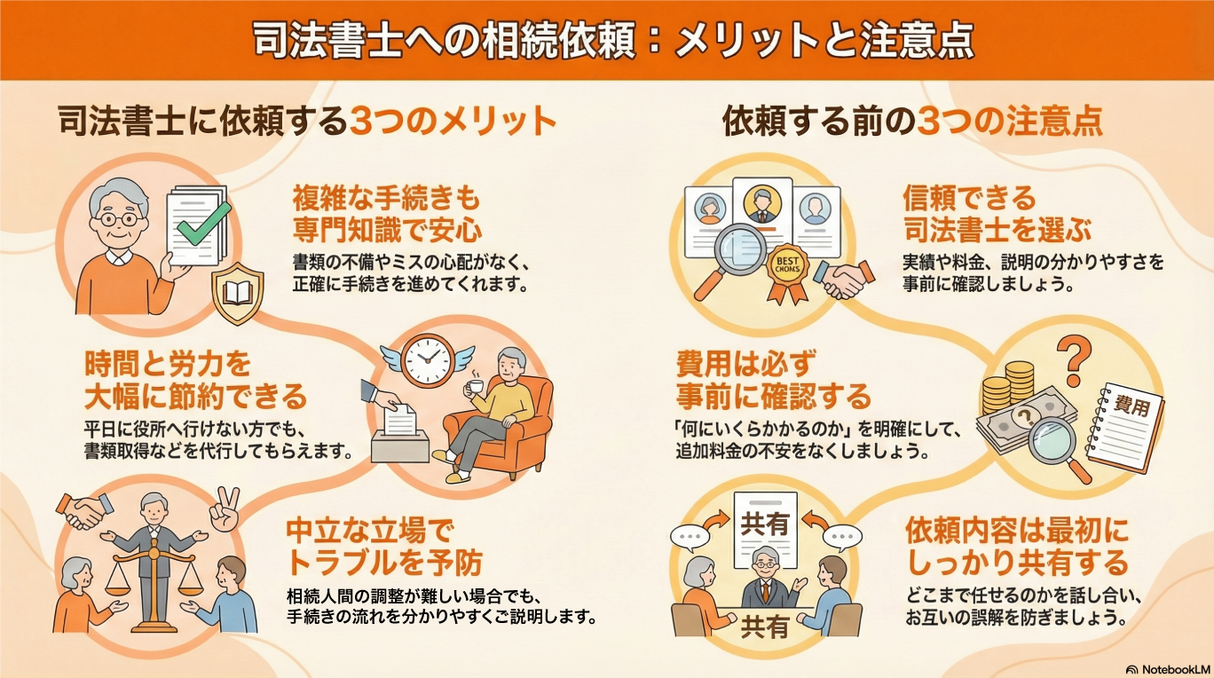 ただし、司法書士に依頼する際にはいくつかの注意点があります。