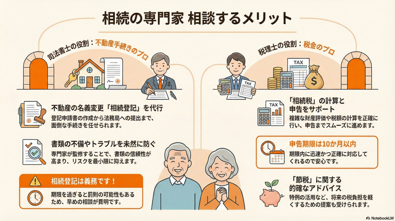 相続手続きを専門家に相談するメリットは、どのような点でしょうか。