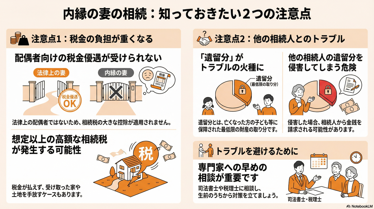内縁の妻に財産を残したいという思いが、結果として争いの火種にならないよう、制度を正しく理解し、冷静に準備を進めることが重要です。