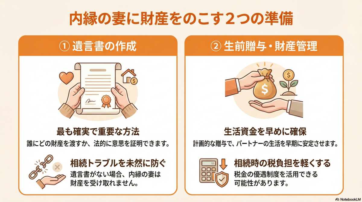 内縁の妻にとって、相続は「起きてから考える」ものではなく、「生前にどこまで準備できたか」で結果が大きく変わります。